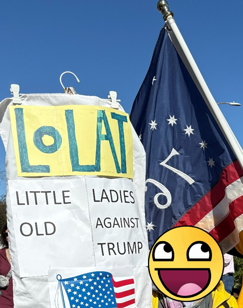 A community of older people (and those who care about us/them) who combat the Trump administration’s tyrannical policies by Doing One Thing (DOT) in any arena that supports LOLAT’s mission and shares that action with others.
